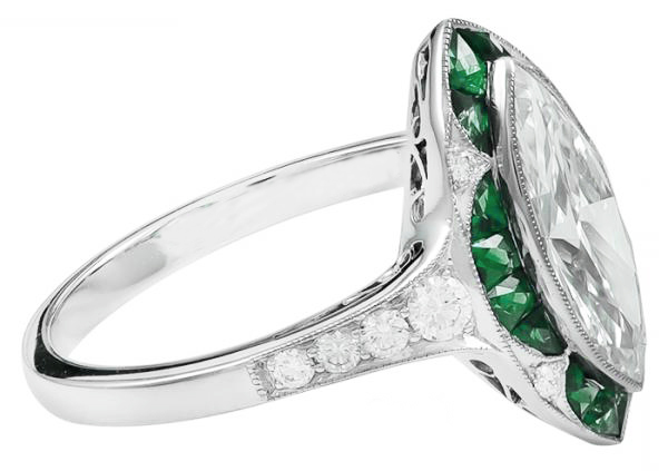 Emerald trillion & round art deco style halo cluster. Most art deco rings in the 1920s were white gold or platinum, however, this style can now be found in white, yellow, or rose gold settings... 17/05/2019 · it is the stream lined look of the emerald cut diamond which makes it more attractive with the art deco setting.